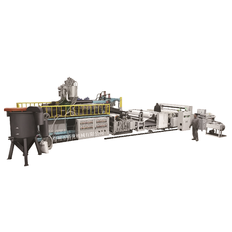設(shè)備按制品結(jié)構(gòu)所需可選擇單層/多層共擠工藝,還可裝備原料自動計量配料系統(tǒng),電暈系統(tǒng)、瑕疵檢測、在線測厚、全自動調(diào)節(jié)模具、襯膜放卷系統(tǒng)、在線分切、卸卷稱重、遠程維保系統(tǒng)等功能件。